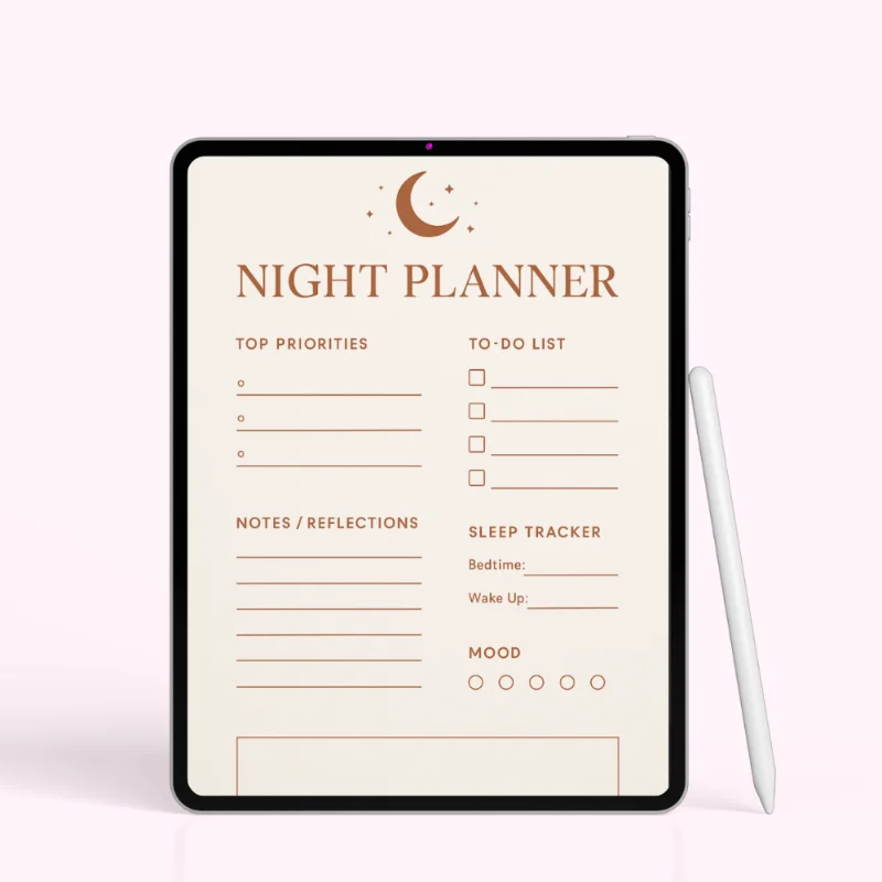 This planner works beautifully for students, professionals, night-shift workers, and anyone who wants their nights to be intentional rather than rushed. Use it daily or on special nights when you want extra organization.